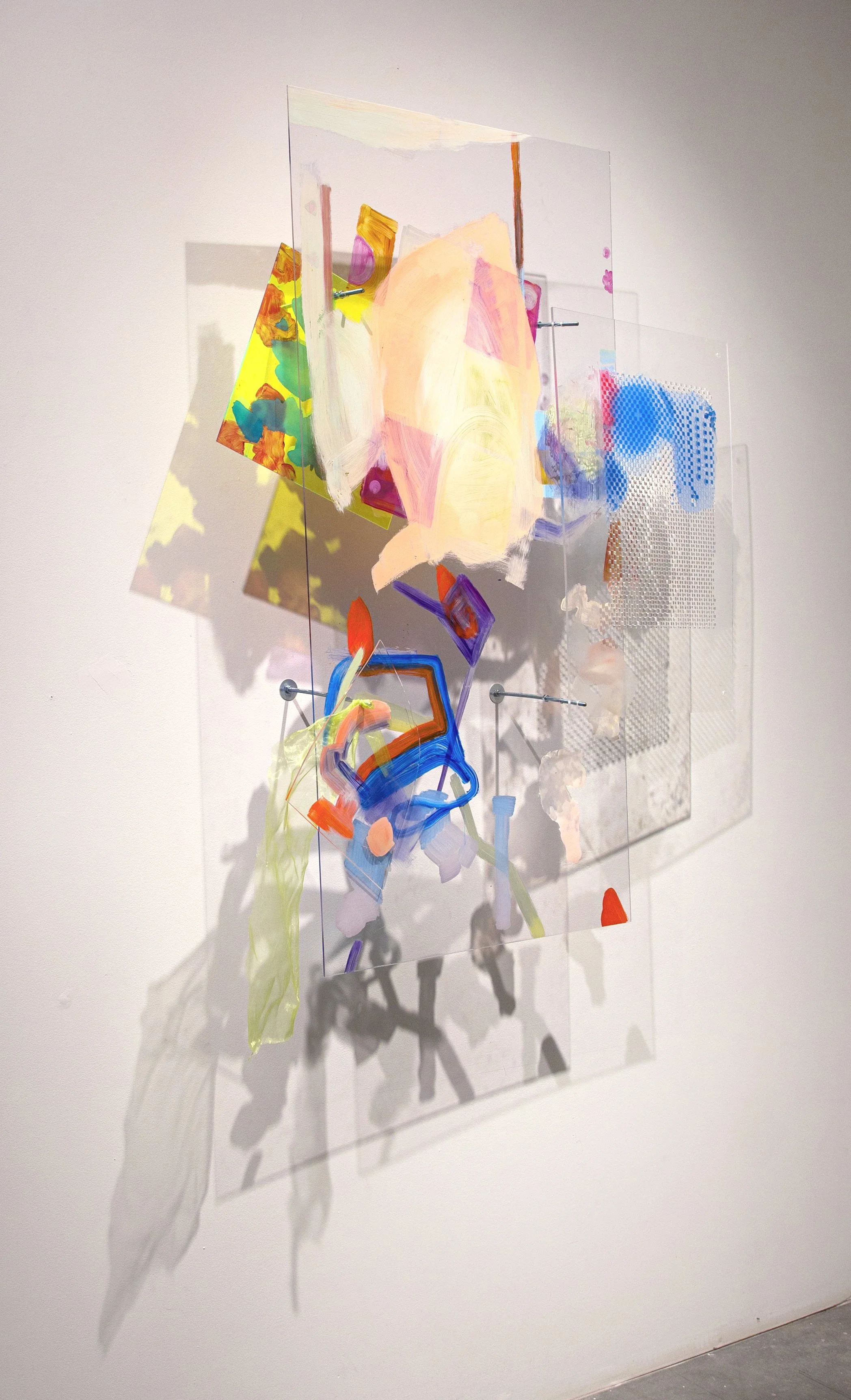 Mollie Burke's works think through the interconnection of organic and mechanic life, and focuses on how it feels to live within the complexities of this tension. She works with colour, forms, and materials - particularly glass - to explore spaces between fragility and pressure, randomness and structure, presence and absence.